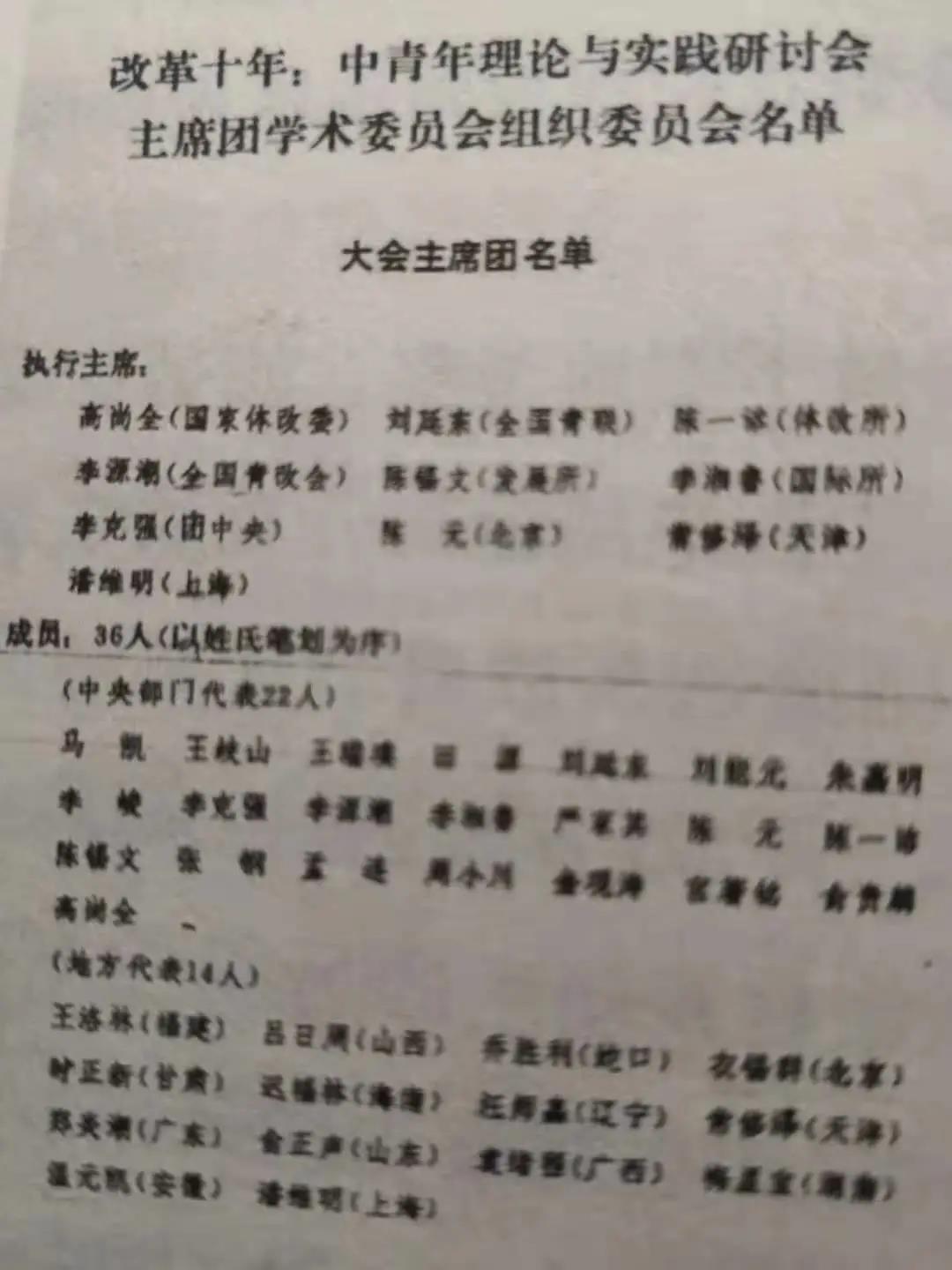 更使我難以忘懷的是,1989年春天的 “改革十年”大會(全稱為“改革十年:中青年理論與實踐研論會”),在北京京豐賓館舉行。近日,微信群流傳當年大會主席團名單,您位列十名執(zhí)行主席之首(我作為天津代表忝列其中)。在這個有全國400多位代表參加的大會上,各種思潮涌現(xiàn):穩(wěn)健改革、偏于保守和偏于激進三種意見激烈爭辯。我參加了幾次執(zhí)行主席會議。在您和李克強、李源潮、劉延東等執(zhí)行主席的共同主持下,會議順利進行并圓滿結束。閉幕前,受到中央政治局、國務院領導和中央顧問委員會老同志的接見。在改革十年這一關鍵節(jié)點上的會議,受到各方關注和重視,是很不容易的。對這樣一個重要會議且直接共事數(shù)日,我又怎么能忘記?