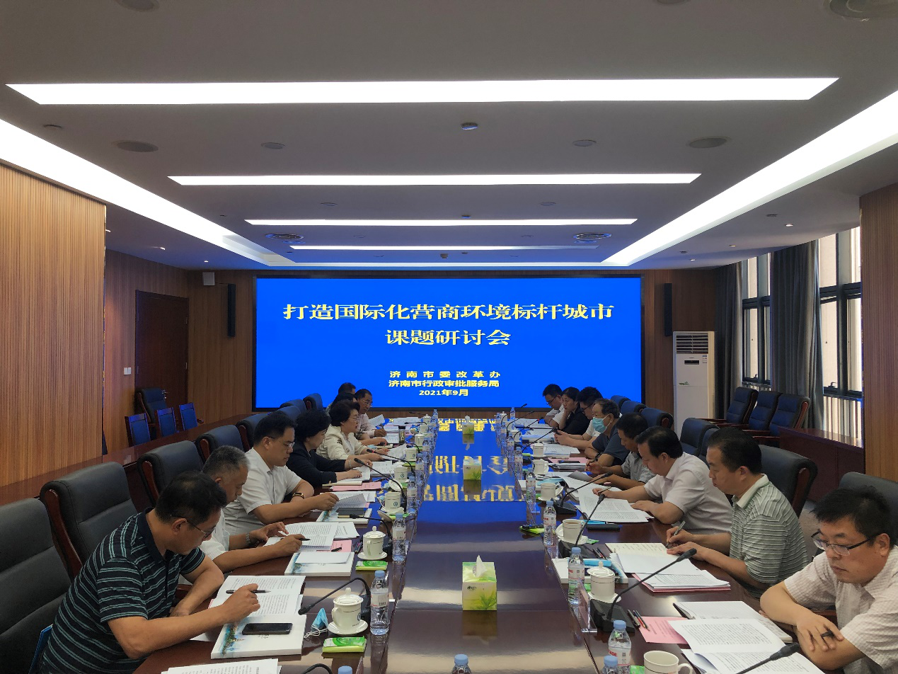 15日至17日,課題組調(diào)研濟(jì)南“深化放管服改革打造國際化營商環(huán)境標(biāo)桿城市”課題期間,走訪了歷下區(qū)、市中區(qū)、章丘區(qū)、濟(jì)南高新區(qū)、中國(山東)自由貿(mào)易試驗(yàn)區(qū)濟(jì)南片區(qū),重點(diǎn)考察了山東產(chǎn)業(yè)技術(shù)研究院、齊魯制藥集團(tuán)有限公司、神思電子技術(shù)股份有限公司,在濟(jì)南市行政審批服務(wù)局、龍奧大廈分別召開課題研討會。濟(jì)南市委副秘書長、政研室主任、改革辦副主任任廣鋒,濟(jì)南市行政審批服務(wù)局黨組書記趙壽娟,濟(jì)南市行政審批服務(wù)局局長劉霞,濟(jì)南市委政研室副主任常建法,濟(jì)南市委改革辦專職副主任謝金嶺,濟(jì)南市委改革辦督促指導(dǎo)處處長謝永昌,濟(jì)南市委改革辦副處長劉耐群,以及濟(jì)南市發(fā)展改革委、濟(jì)南市行政審批服務(wù)局、濟(jì)南市自然資源和規(guī)劃局、濟(jì)南市住房城鄉(xiāng)建設(shè)局、濟(jì)南市市場監(jiān)管局分管負(fù)責(zé)同志,歷下區(qū)、歷城區(qū)區(qū)委改革辦有關(guān)負(fù)責(zé)同志參加課題研討會。