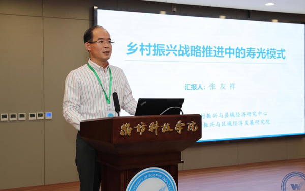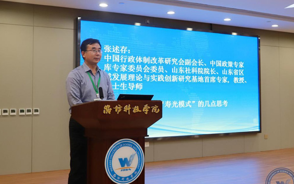 新時(shí)代鄉(xiāng)村振興與區(qū)域經(jīng)濟(jì)發(fā)展研究院執(zhí)行院長、經(jīng)濟(jì)管理學(xué)部主任、教授、博士生導(dǎo)師張友祥代表“壽光模式”研究課題組從“壽光模式”的內(nèi)涵和特征、形成機(jī)制、實(shí)踐價(jià)值等方面作了研究成果匯報(bào)。