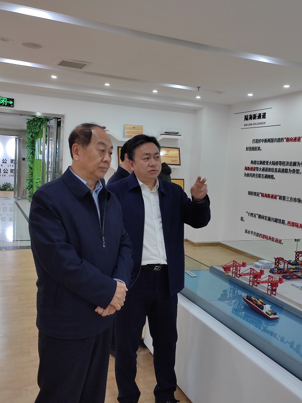 調(diào)研期間,趙艾和調(diào)研組一行還深入重慶國際物流樞紐展館、陸海新通道運營有限公司等實地了解情況,聽取意見。中新示范項目管理局副局長唐衛(wèi)東等陪同調(diào)研。