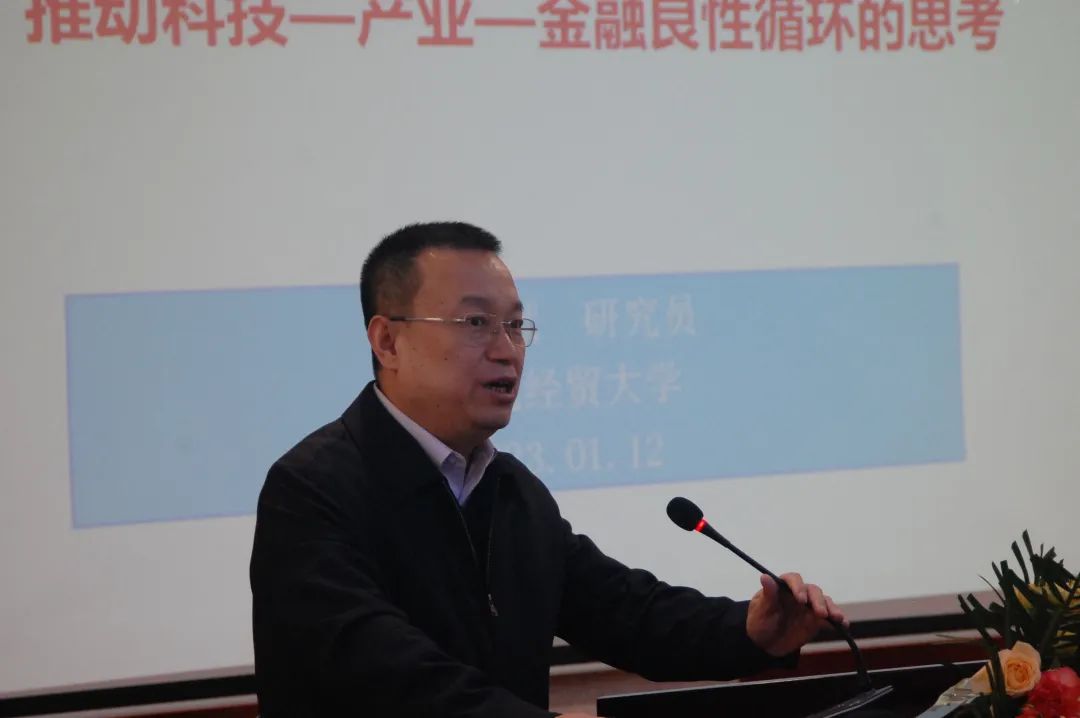 史玉強(qiáng)在書面致辭中說,此次會議雖然規(guī)模不大,時間也不長,但內(nèi)容很豐富,層層較高,很有特點(diǎn),是一個小而精、小而美的高質(zhì)量研討會。會議以貫徹黨的二十大精神,深化改革,推動經(jīng)濟(jì)高質(zhì)量發(fā)展為主題,深入研究產(chǎn)業(yè)、科技、金融良性驅(qū)動,建設(shè)現(xiàn)代化產(chǎn)業(yè)體系,是當(dāng)前經(jīng)濟(jì)工作重點(diǎn)。會議組織形式新穎,兩個研究會、一所大學(xué)、一家銀行聚集研討,各有特點(diǎn),各有優(yōu)勢,一定會推出高水平成果。參會演講的專家都是業(yè)內(nèi)、省內(nèi)的頂級專家,是一次名副其實(shí)的精英聚會。會議堅(jiān)持虛實(shí)結(jié)合,設(shè)計(jì)了銀企對接環(huán)節(jié)。