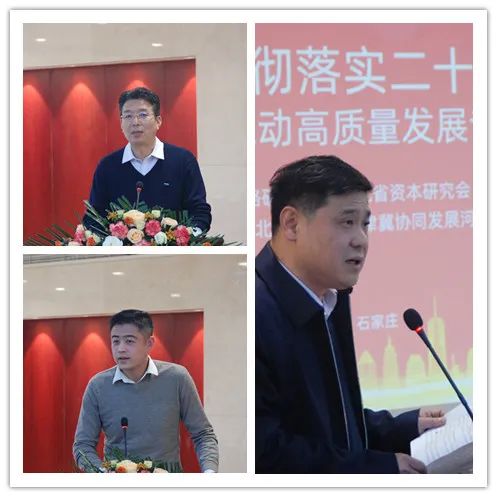 中國商業(yè)經(jīng)濟(jì)學(xué)會副會長、河北省改革戰(zhàn)略研究會顧問、河北經(jīng)貿(mào)大學(xué)原校長紀(jì)良綱,河北省資本研究會會長、杰明投資董事長李月分別發(fā)表致辭,中國經(jīng)濟(jì)體制改革研究會副會長、河北省改革戰(zhàn)略研究會會長劉萬玲致辭并作主旨演講,河北資本研究會首席經(jīng)濟(jì)學(xué)家、河北省商務(wù)廳原巡視員史玉強(qiáng)從外地發(fā)來書面致辭。河北省改革戰(zhàn)略研究會副會長、河北經(jīng)貿(mào)大學(xué)副校長田學(xué)斌教授,邯鄲銀行黨委書記、董事長鄭志瑛教授,河北省宏觀經(jīng)濟(jì)研究院副院長高智研究員,河北經(jīng)貿(mào)大學(xué)金融學(xué)院院長王重潤教授分別作主題演講。河北省改革戰(zhàn)略研究會副會長、河北省社科院創(chuàng)新驅(qū)動發(fā)展研究中心主任顏廷標(biāo)研究員主持研討會。會議期間還舉辦了新書發(fā)布、銀企對接活動。參加會議的還有河北省改革戰(zhàn)略研究會特邀高級專家、河北冀廣傳媒集團(tuán)公司原董事長趙華茂,河北省改革戰(zhàn)略研究會副會長馮文斌 ,經(jīng)貿(mào)橋聯(lián)合創(chuàng)始人、省校企合作促進(jìn)會執(zhí)行會長張曉軍,河北省資本研究會副會長、河北省軍民兩用技術(shù)交易中心主任周天易,邯鄲銀行石家莊分行行長常志英,河北省資本研究會秘書長韓峰,河北省改革戰(zhàn)略研究會秘書長李文正等。省內(nèi)經(jīng)濟(jì)界知名學(xué)者、行業(yè)專家和企業(yè)代表等30余人出席會議。