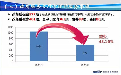 指出在這些事項(xiàng)中,合并取消的事項(xiàng)有14項(xiàng),實(shí)際基本不存在的事項(xiàng)有8項(xiàng),無實(shí)際意義的事項(xiàng)有10項(xiàng),處罰、監(jiān)制的事項(xiàng)有14項(xiàng)。